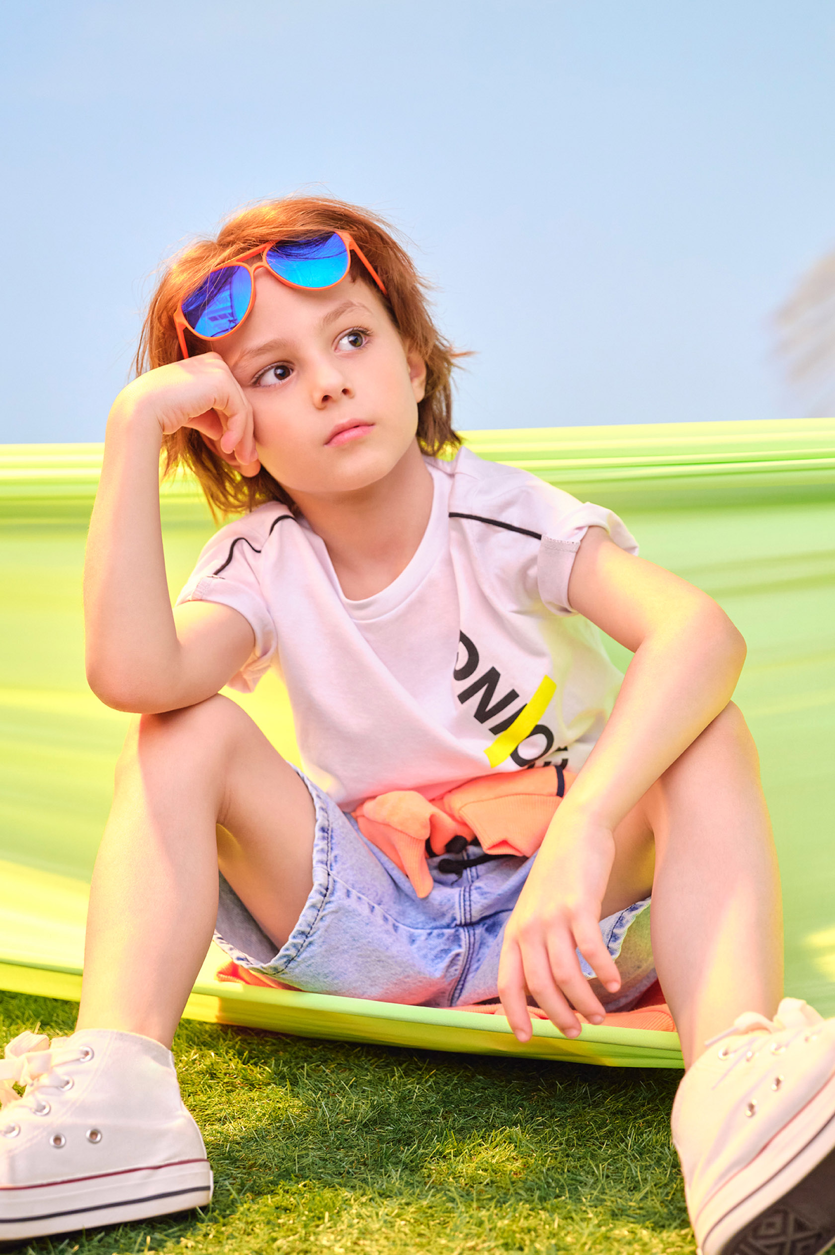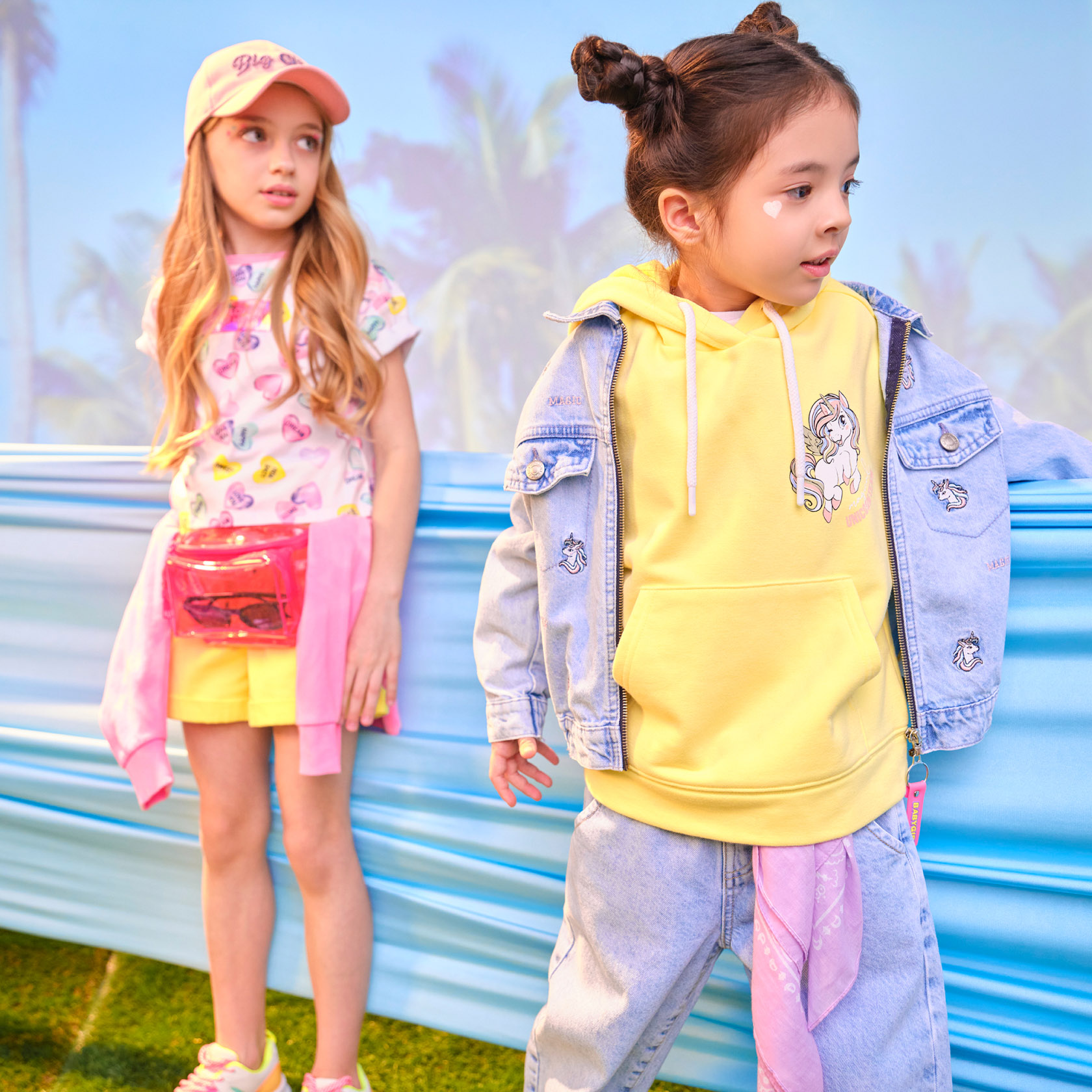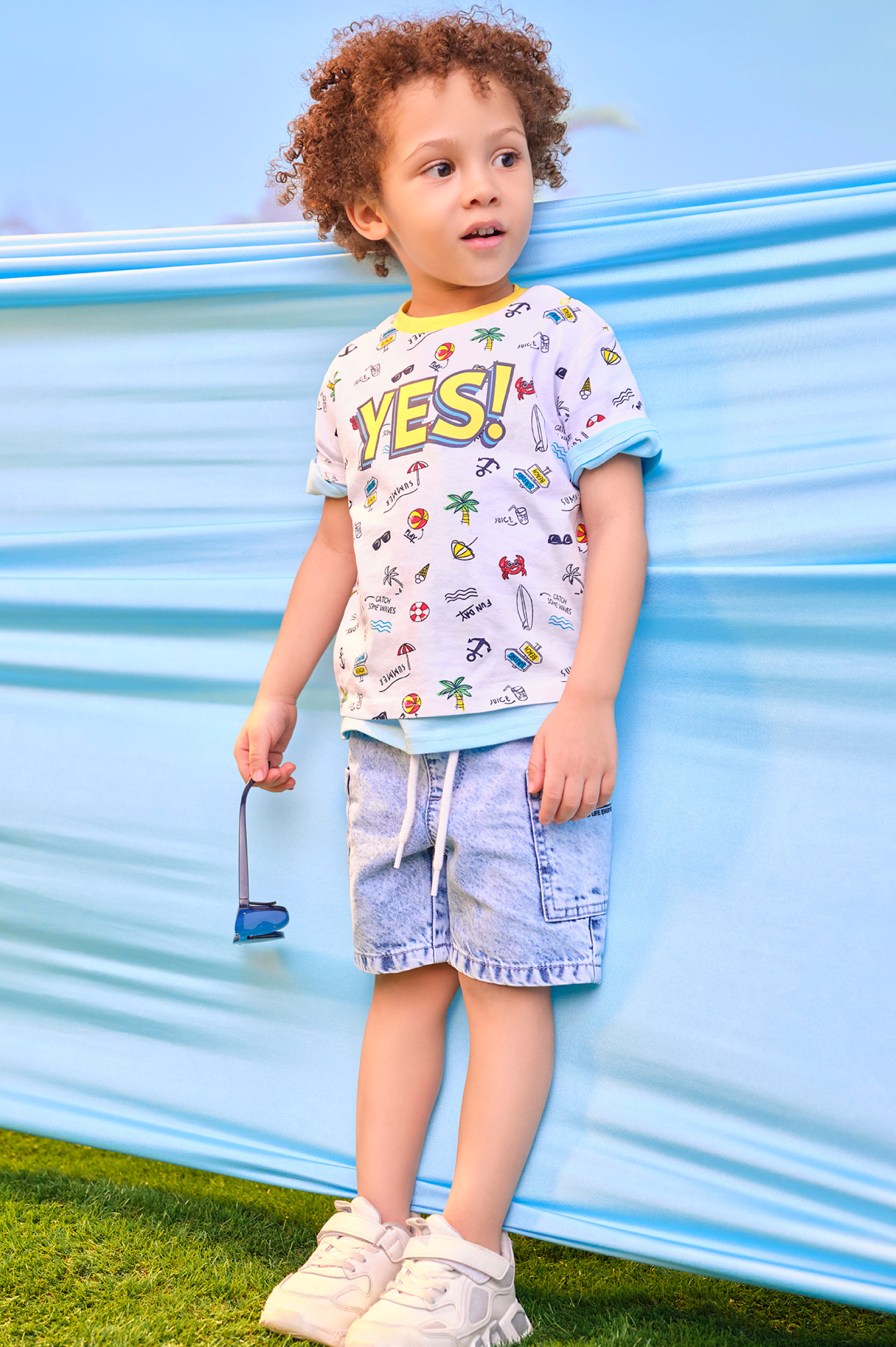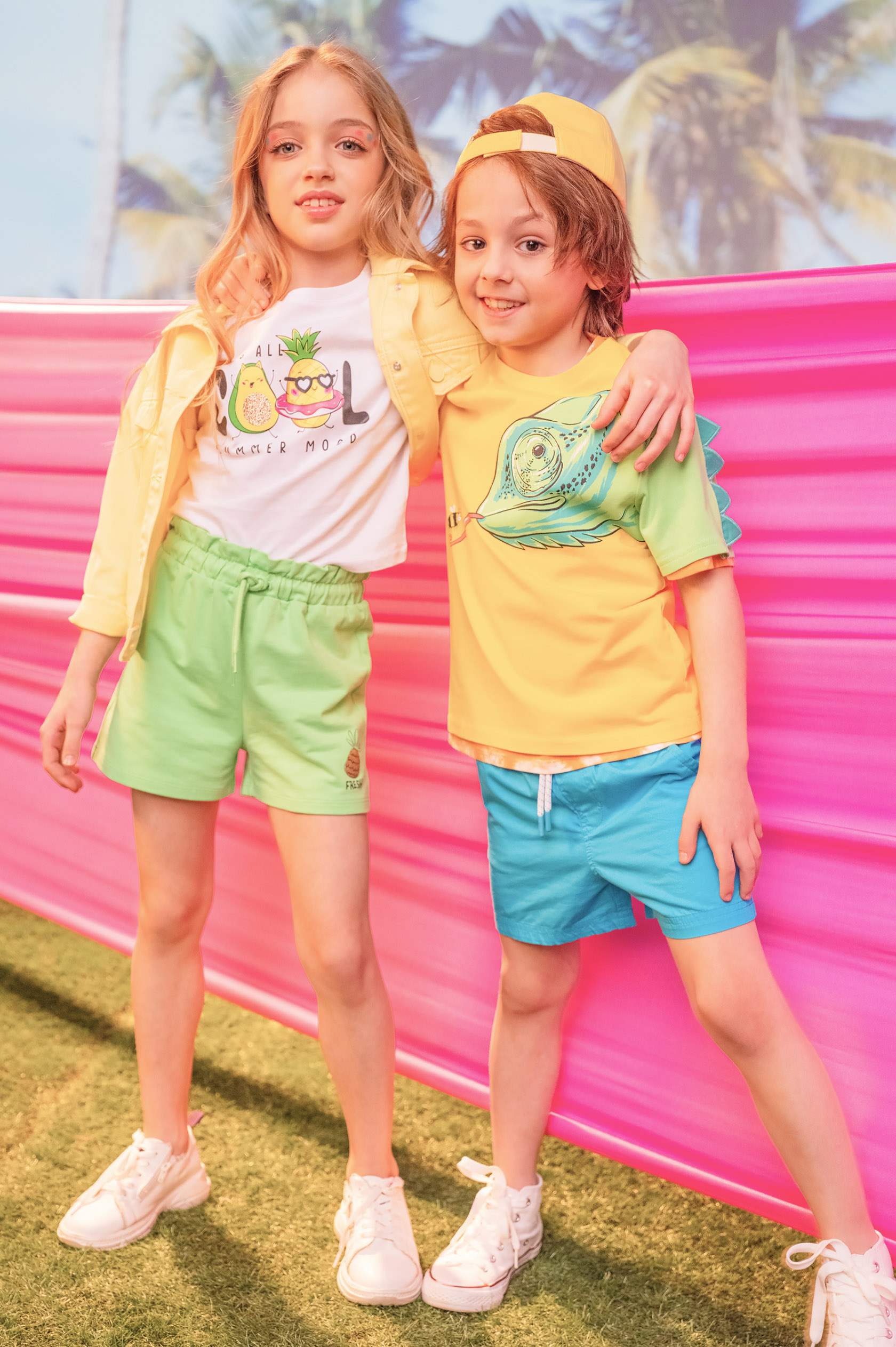 Яркие рисунки, фрукты, море и путешествия — это летняя коллекция для детей.
