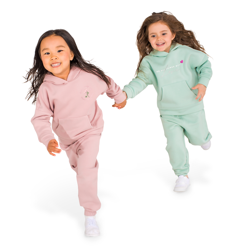 Озорным девчонкам никак не усидеть на месте! Нежные пастельные цвета, уютный oversize, мягкий футер и немного блёсток в новой спортивной коллекция для девочек. Свитшоты, худи, брюки-джоггеры и платья — выбирайте любимую удобную одежду для активного дня.